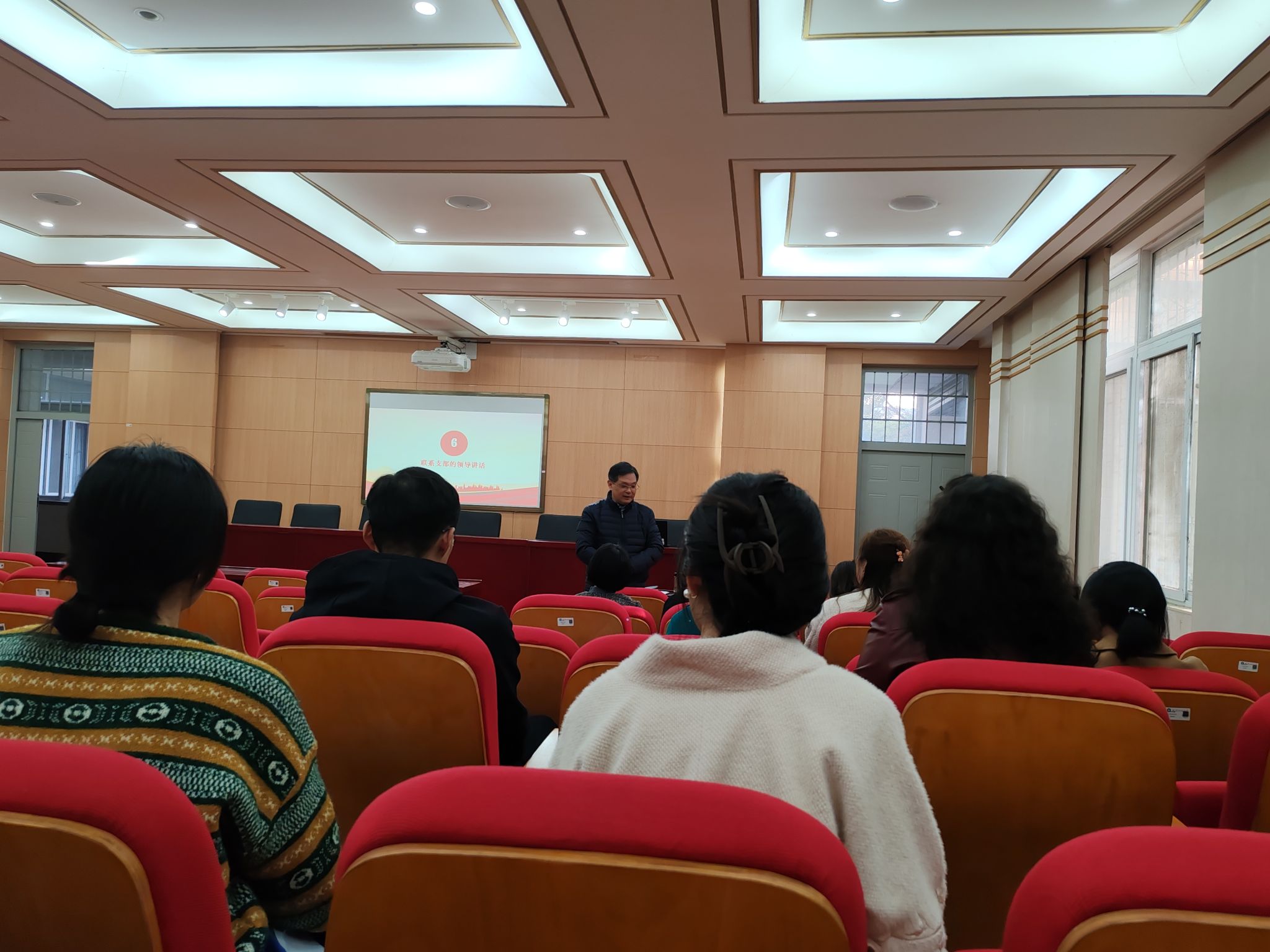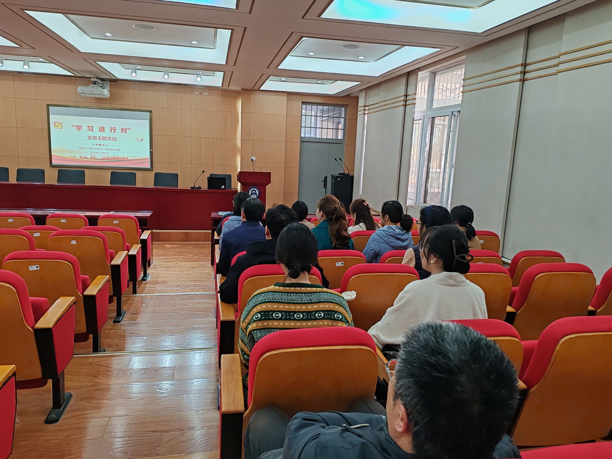 本网讯(通讯员向艳)11月23日,马克思主义理论系教工党支部在教四楼41101报告厅开展主题党日活动。会议由支部书记郑琼梅主持,学院党委书记唐忠义以及支部全体党员参会。