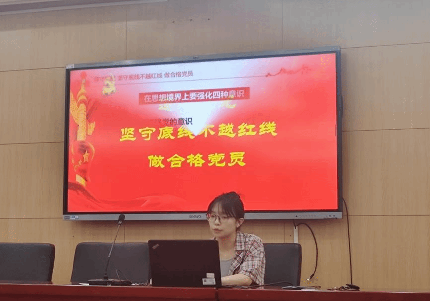 会议伊始,支部书记姚晓莉通报了本月党员参会和支部党费缴纳情况,支部组织委员何雨带领全体党员重温入党誓词,支部宣传委员史淑颖带领全体党员领读《中国共产党章程》第七章“党的纪律”内容,激励大家牢记入党初心,永葆忠诚底色。