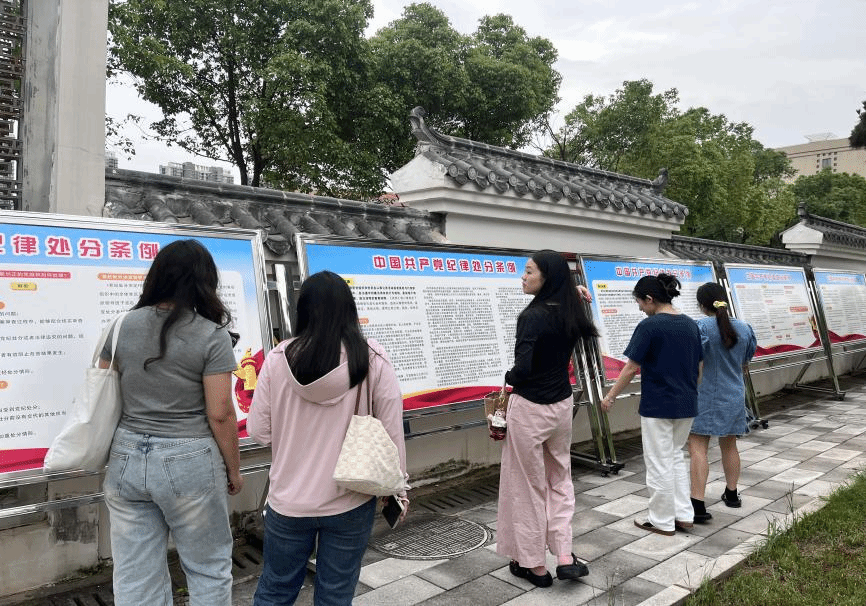 随后,支部全体成员来到武科大廉园,集体学习园内展板上“中国共产党纪律处分条例漫画”“习近平全面从严治党重要论述用典”“中国共产党廉洁自律准则”等内容,借用校园廉洁教育资源培育党员同志洁身自好、自强自律的精神品格。