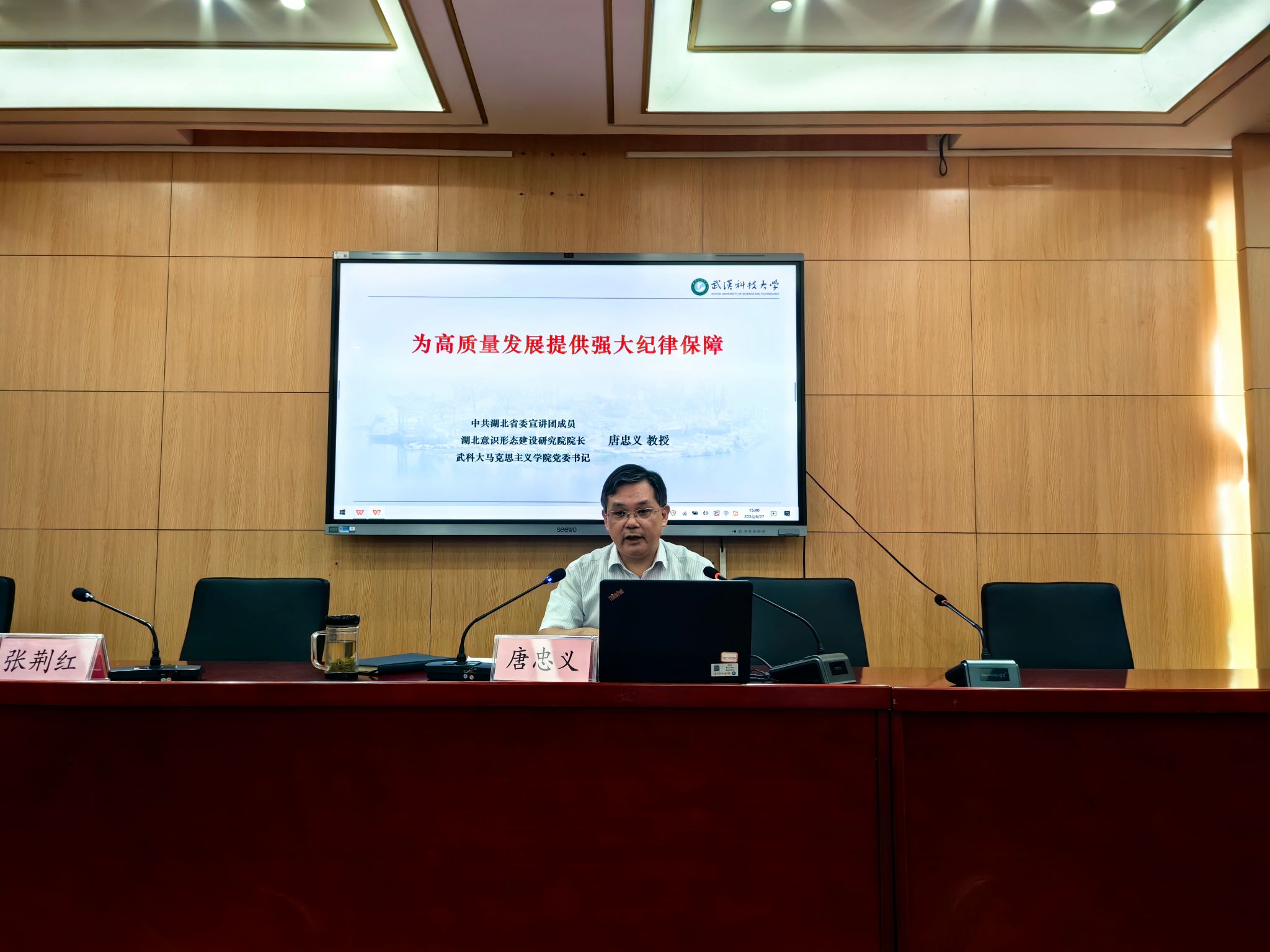 本网讯(通讯员郭海沙)6月27日下午,学院在41101报告厅开展纪律专题党课暨警示教育大会,学院党委书记唐忠义讲授题为“为高质量发展提供强大纪律保障”的专题党课,学院全体教职工党员以及学生党员代表参加会议。