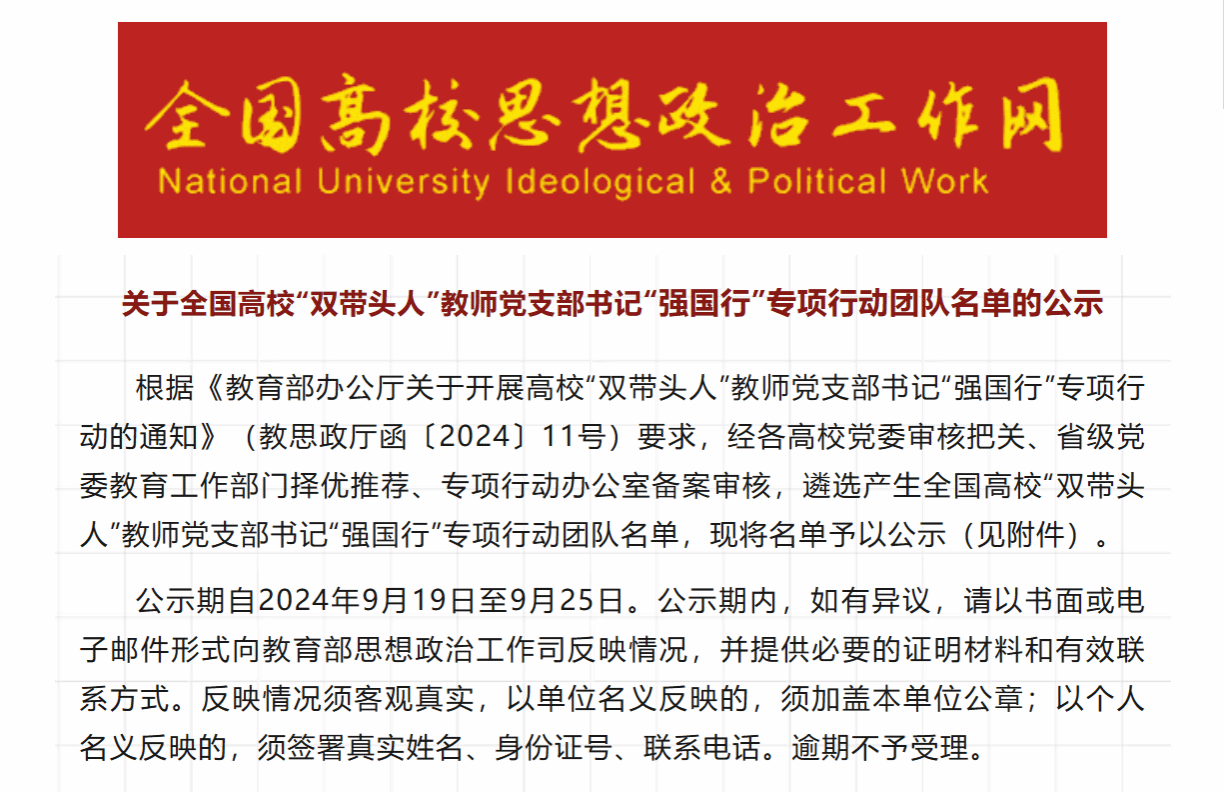 关于全国高校“双带头人”教师党支部书记“强国行”专项行动团队名单的公示 (qq.com)
