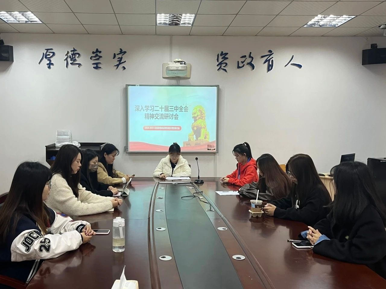 本网讯(通讯员王小玉)为深入学习贯彻党的二十届三中全会精神,切实提高发展对象的党性修养和思想觉悟,扎实做好发展对象的培养和教育工作,11月21日,william威廉中文分党校组织本学期10名发展对象在41114会议室召开学习党的二十届三中全会精神交流研讨会。会议由组长王小玉同学主持。