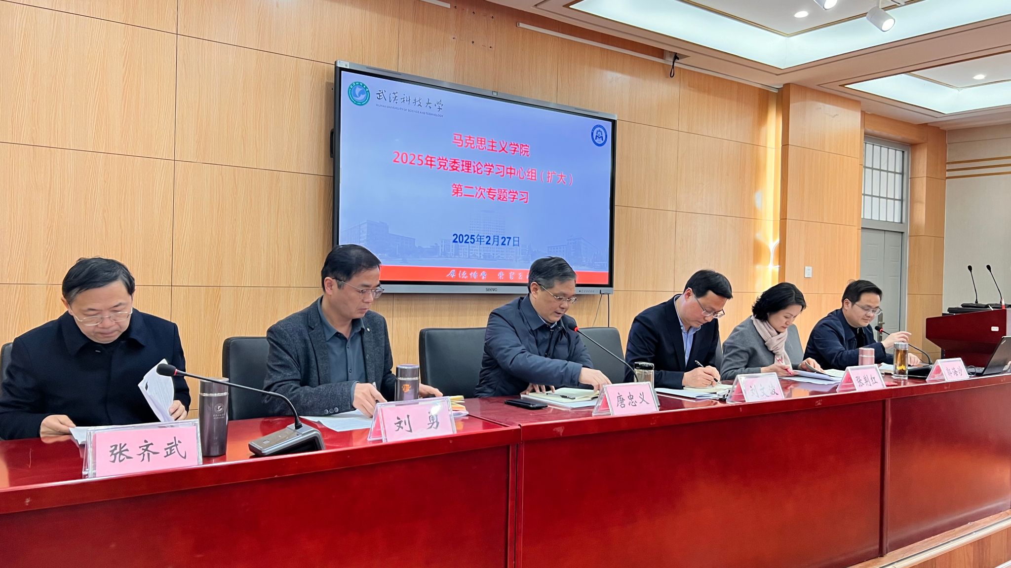 本网讯(通讯员李晓明)2月27日下午,学院在教四楼41101报告厅举行2025年党委理论学习中心组(扩大)第二次学习会议。党委书记唐忠义主持会议并讲话,学院全体党委委员、全院教职工参加会议。