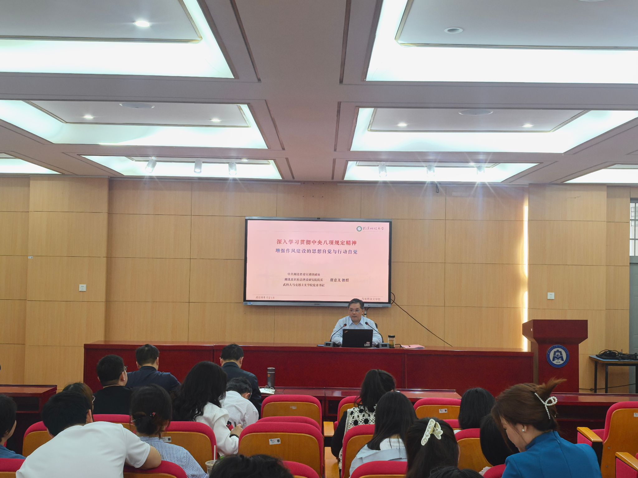 唐忠义以《深入学习贯彻中央八项规定精神 增强作风建设的思想自觉与行动自觉》为题,深刻分析中央八项规定精神的形成背景和重大意义,全面解读中央八项规定及实施细则的主要内容,系统阐释违反中央八项规定精神的各类情形和典型案例,总结剖析中央八项规定精神的精髓要义和实践要求。