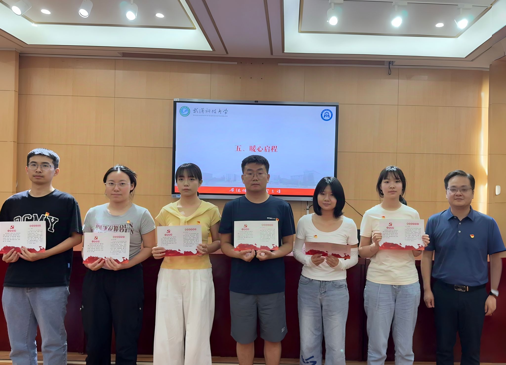 在“暖心启程”环节。学院为毕业生党员代表颁发党员政治生日贺卡,提醒大家时刻牢记入党初心,践行党员使命。