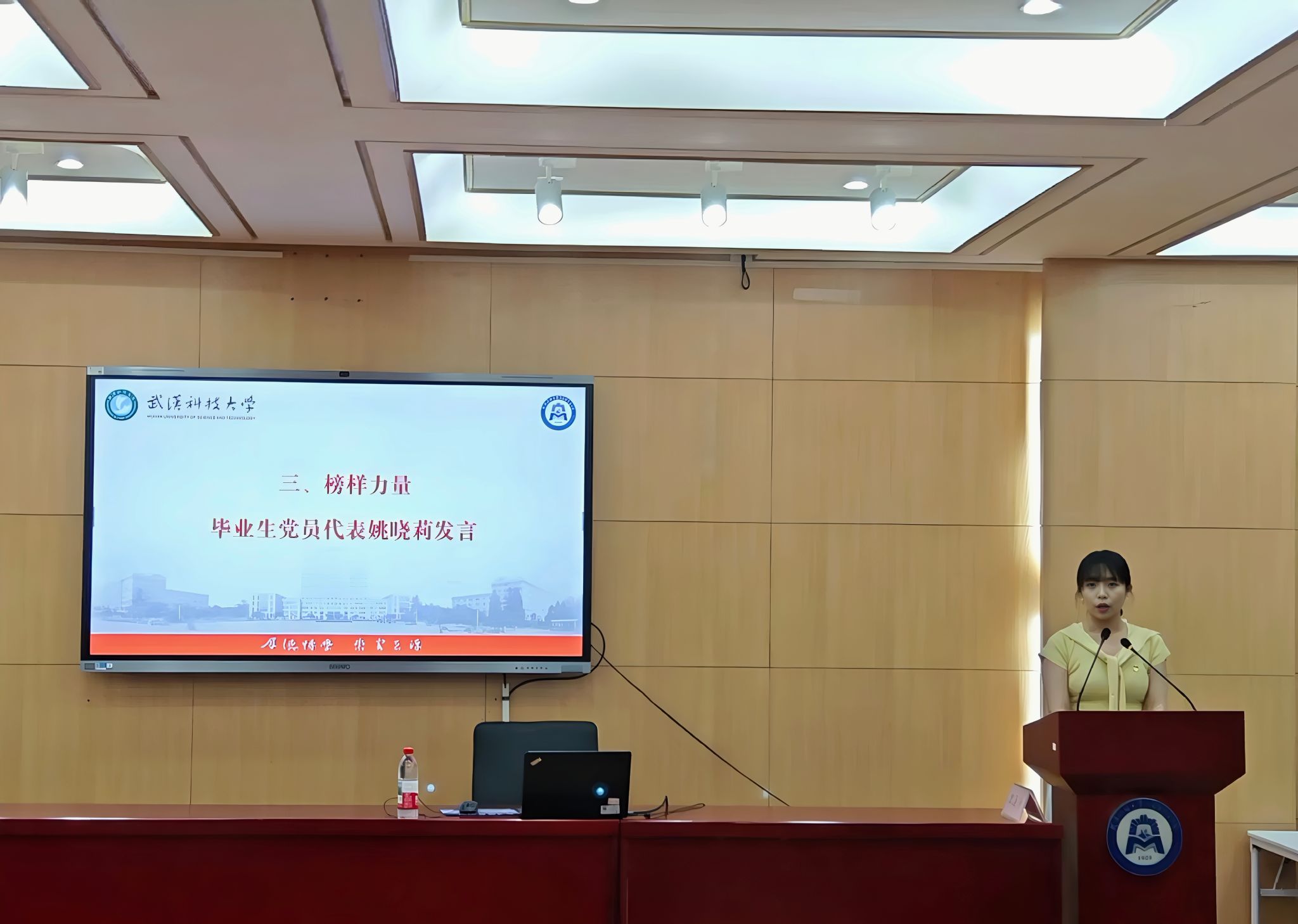 在“榜样力量”环节,2025届毕业生党员代表姚晓莉同学上台发言,她鼓励党员同志们要树立远大理想,坚定理想信念,勇于担当时代赋予的使命任务,努力成为有理想、敢担当、能吃苦、肯奋斗的新时代好青年。