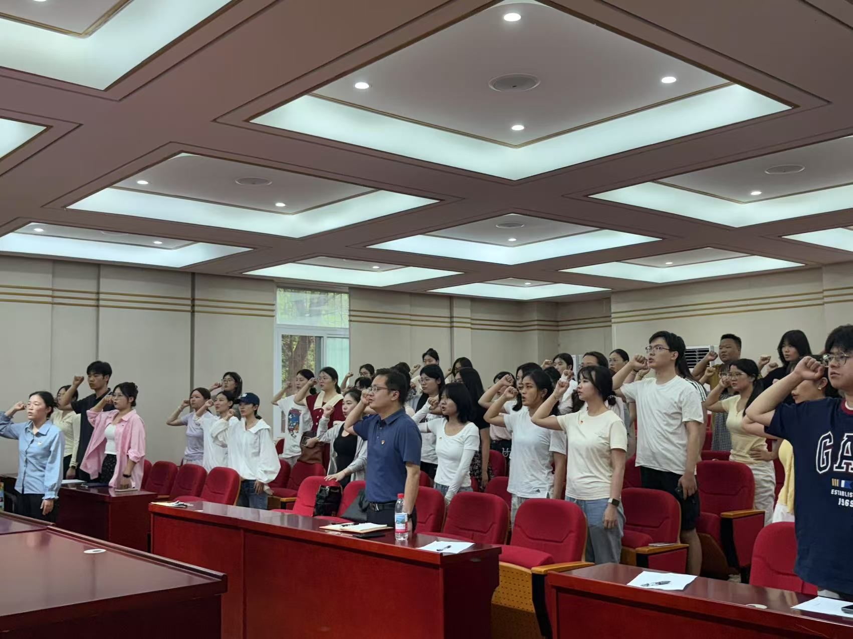 在第二党支部宣传委员张乐萍的领誓下,全体党员肃立,面向党旗重温入党誓词,铿锵有力的誓言响彻会场,进一步强化党员意识,唤醒入党初心。