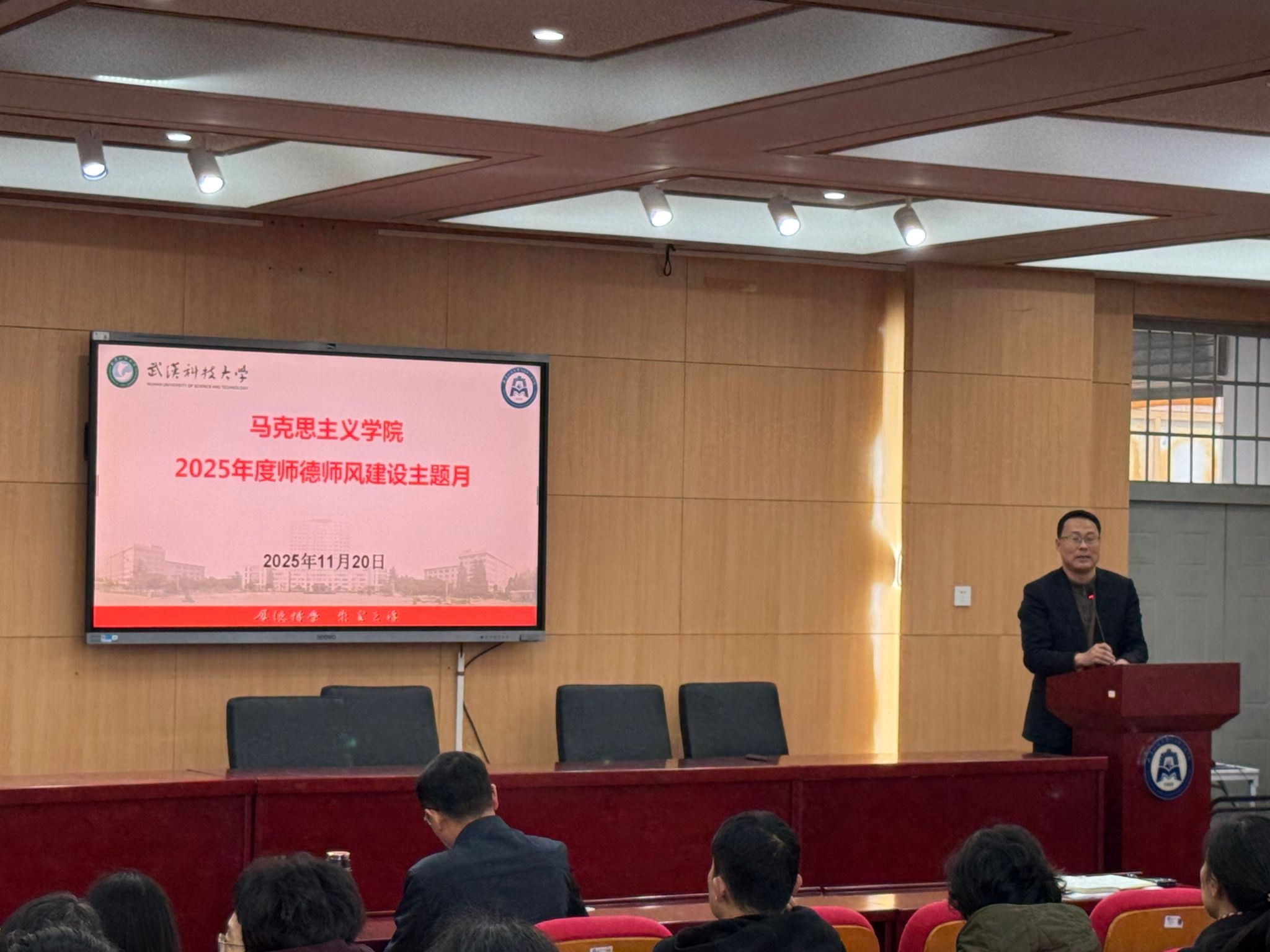 本网讯(通讯员周怡君)为深入学习领会习近平总书记关于师德师风的重要指示精神,进一步加强思政课教师师德师风建设,筑牢思政课教师师德师风底线。11月20日下午,学院在41101报告厅召开了2025年秋季学期师德师风建设月专题学习会,院长刘文波主持会议并讲话,学院领导班子、全体教师参加会议。