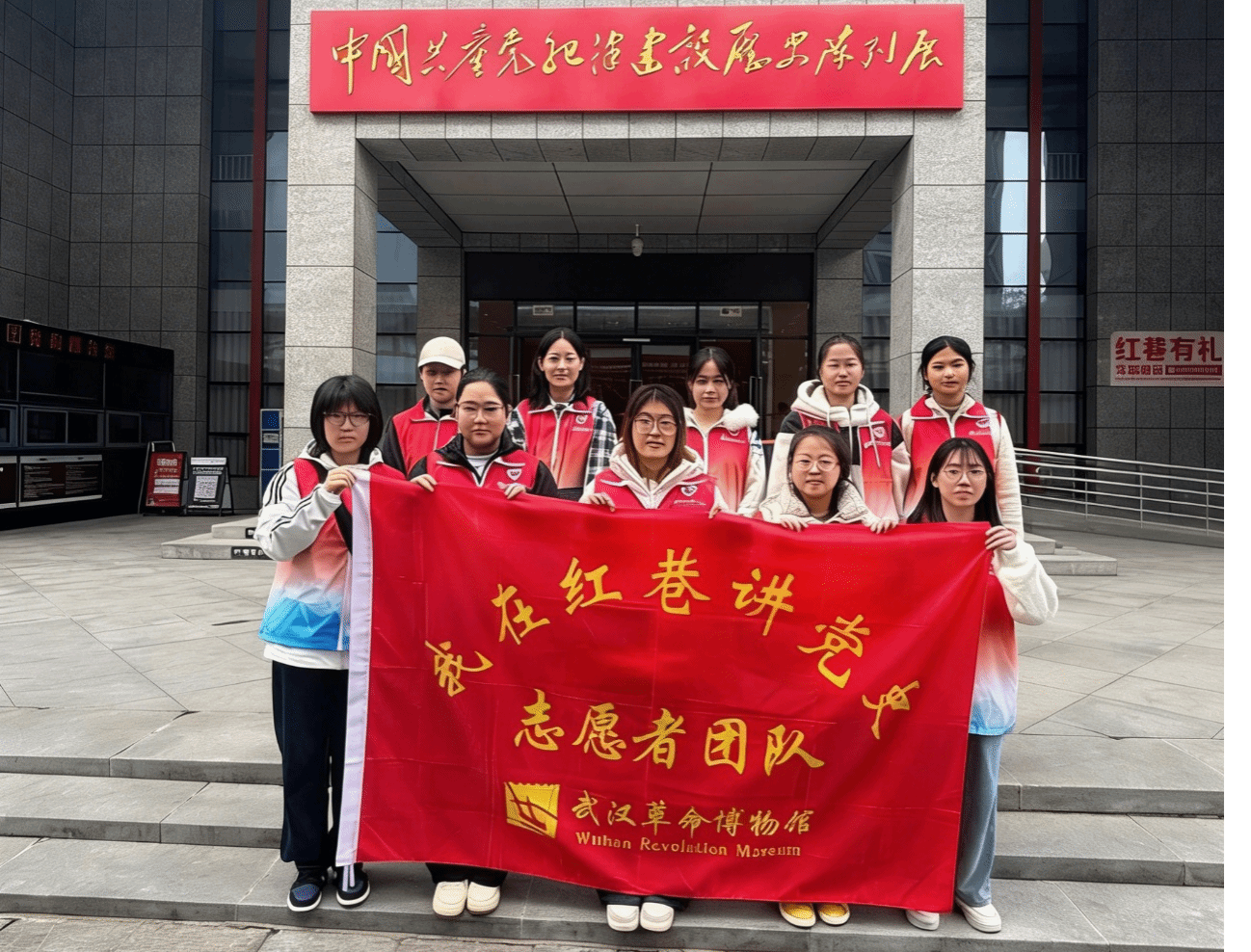 本网讯(通讯员崔思妍 郭如玉)为深化“大思政课”实践教学成效,推动理论学习与红色实践深度融合,3月21日,学院组织志愿者团队走进武汉革命博物馆开展实践培训,马克思主义理论系副主任康丹老师带队参加。活动以岗前培训与红色寻访为核心,引导青年学子在历史现场感悟红色精神、锤炼志愿本领。