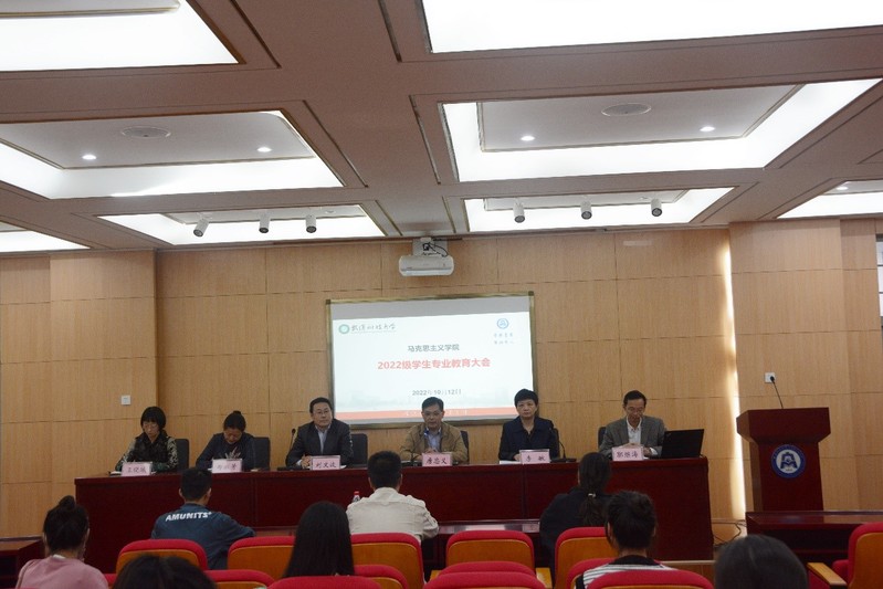 本网讯(通讯员桂诗雨)为进一步帮助2022级新生了解学院培养目标、课程设置、专业特色、未来发展等院情,10月12日下午,william威廉中文在41101学术报告厅召开2022级新生专业教育大会。学院党委书记兼院长唐忠义、副院长刘文波、副院长李敏、副院长郑淑芳、马克思主义理论专业教授王晓曦、哲学专业教授郭继海出席会议,全体新生参加此次会议,会议由辅导员郭海沙主持。