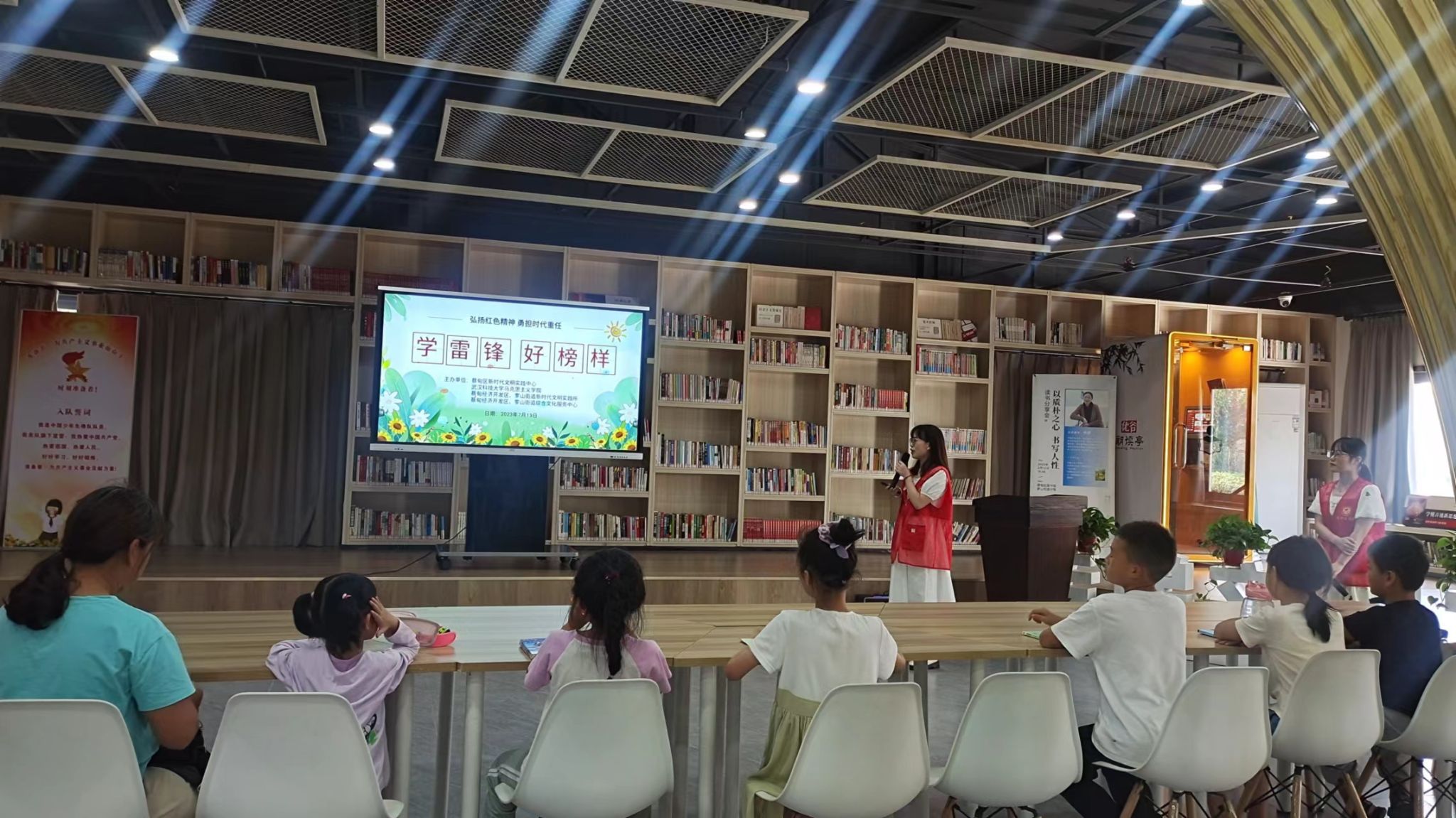 本网讯(通讯员李霞丹 孙琳)为进一步弘扬学雷锋志愿服务精神,赓续红色血脉,7月13日,我院暑期社会实践团队在蔡甸新时代文明实践中心开展红色少年说系列活动——弘扬红色精神、勇担时代重任。