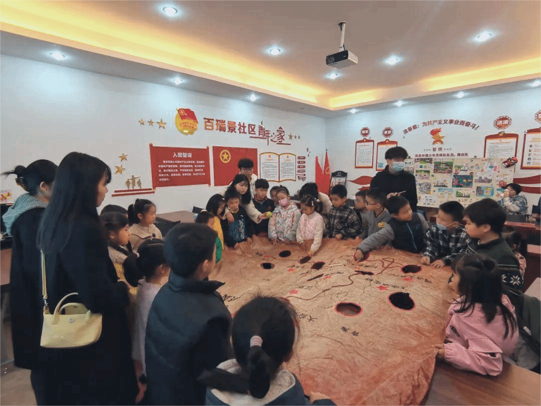 在课程设计研发阶段,主创成员周含雪、张欣宇、王浩文等深入社区,与青少年儿童面对面开展《重走长征路,强国少年行》的课程宣讲。结合宣讲现场的实际反馈,根据青少年的年龄特征、认知程度和知识的接受能力等情况,团队成员不断优化课程设计,增强课程适龄性匹配度。