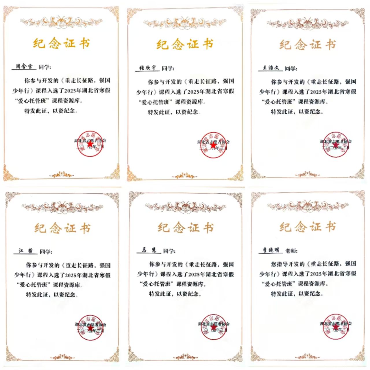武科大网讯(通讯员周含雪)为积极响应团省委寒假“爱心托管班”服务项目,为少年儿童提供公益托管服务。由学院团委书记李晓明老师指导,周含雪、张欣宇、王浩文等同学共同参与设计的红色主题教育课程《重走长征路,强国少年行》入选湖北省志愿者协会精品课程库,成为德育板块的示范项目。