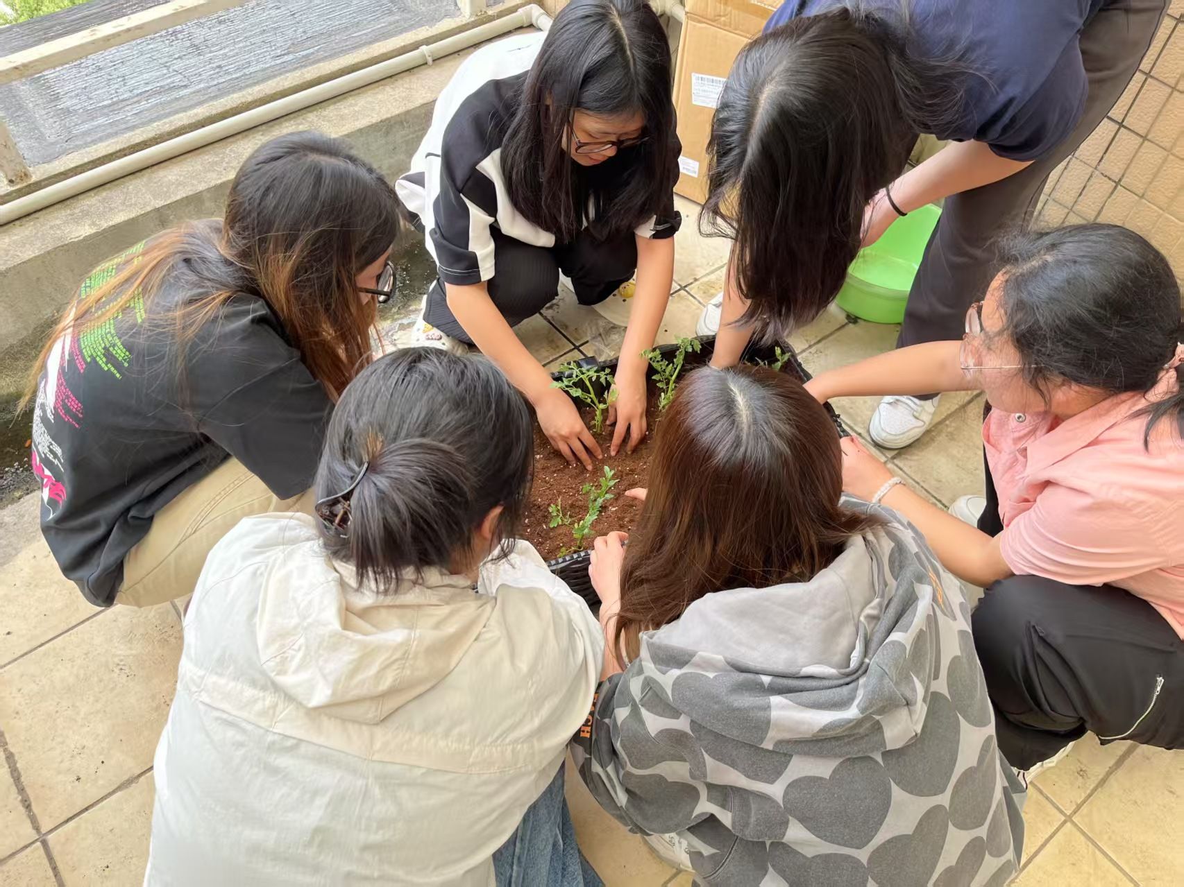 本网讯(通讯员李婉怡 王小玉)为将马克思主义劳动观教育融入日常实践,引导学生以双手创造美好,4月24日下午,我院于教四楼阳台花园开展了“舒心花园”劳动实践主题教育活动,2024级本科生以“劳动+美育”模式参与校园空间美化。