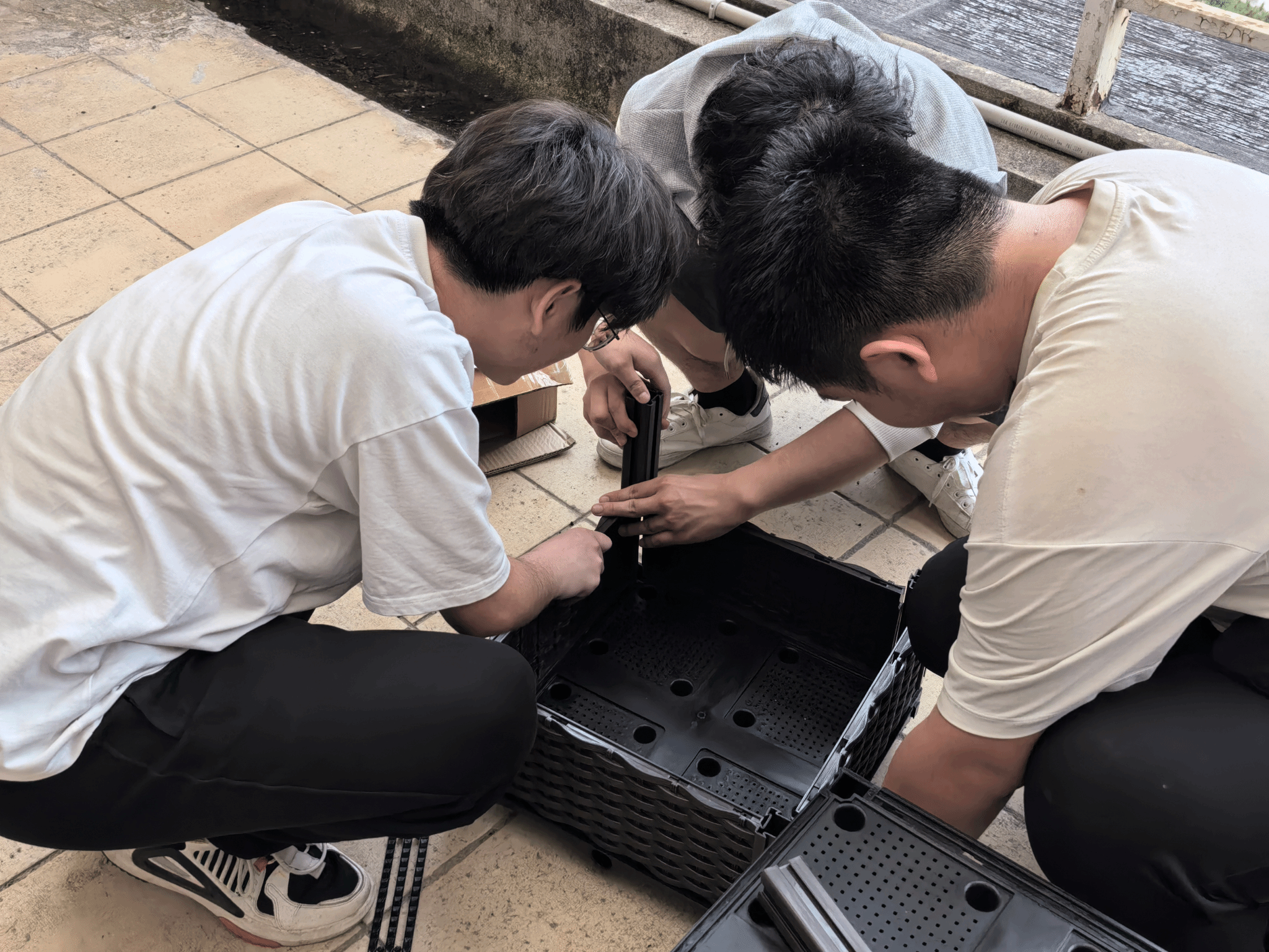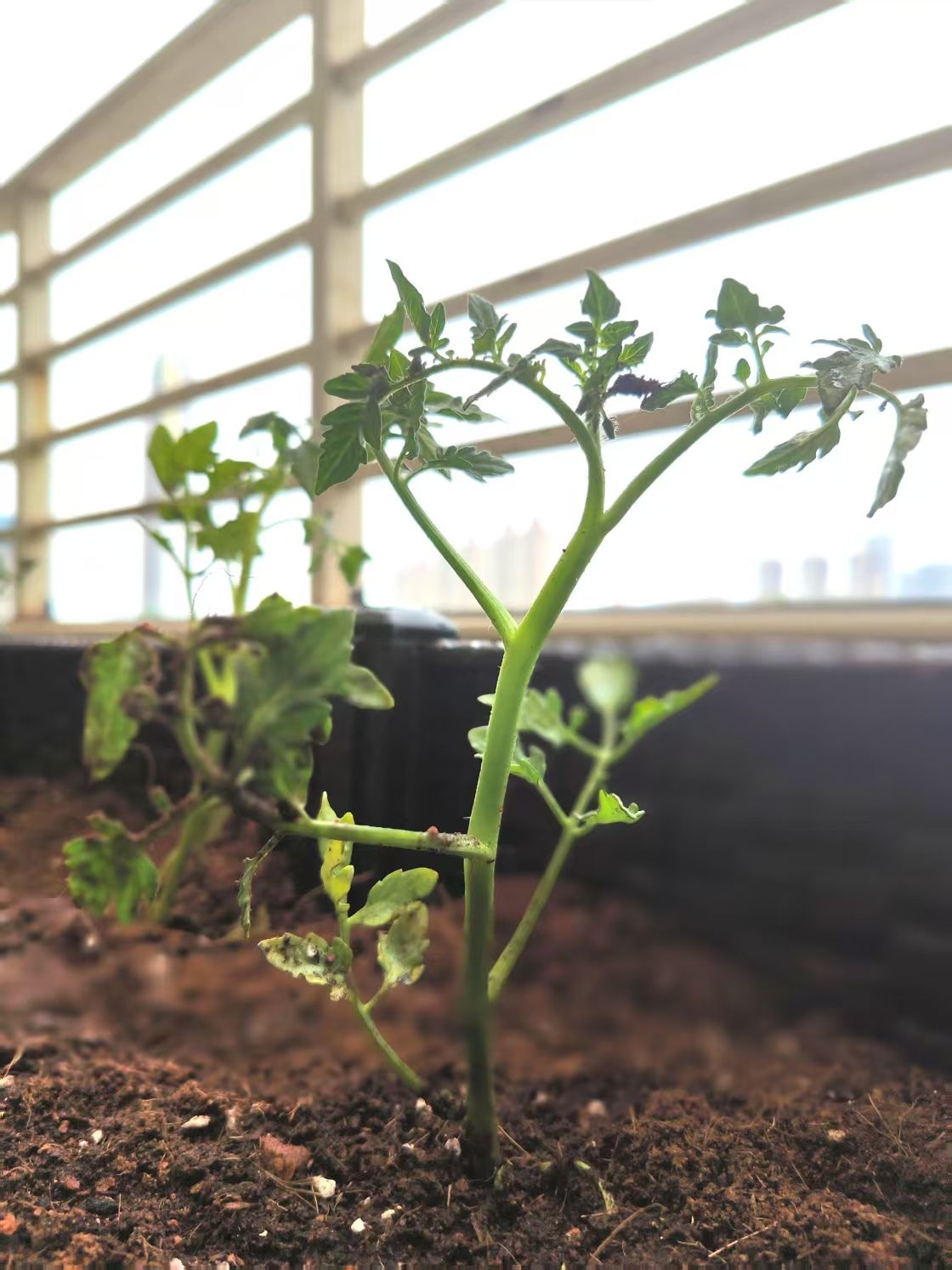 活动现场,同学们分工协作、各显其能。同学们化身为“匠人”,用螺丝刀将木制框架组装为稳固的种植箱;化身为“园艺师”,手持小铲子细致完成铺土、挖坑、栽苗等工序。当一盆盆番茄苗在阳光下挺立,原本闲置的阳台蜕变为错落有致的“空中花园”。更有同学主动清扫阳台角落,将杂物堆放区整理为整齐的工具收纳角,让劳动实践与空间美化相得益彰。每位同学挑选了心仪的番茄苗并亲手栽种,让劳动成果承载个人责任与集体记忆。