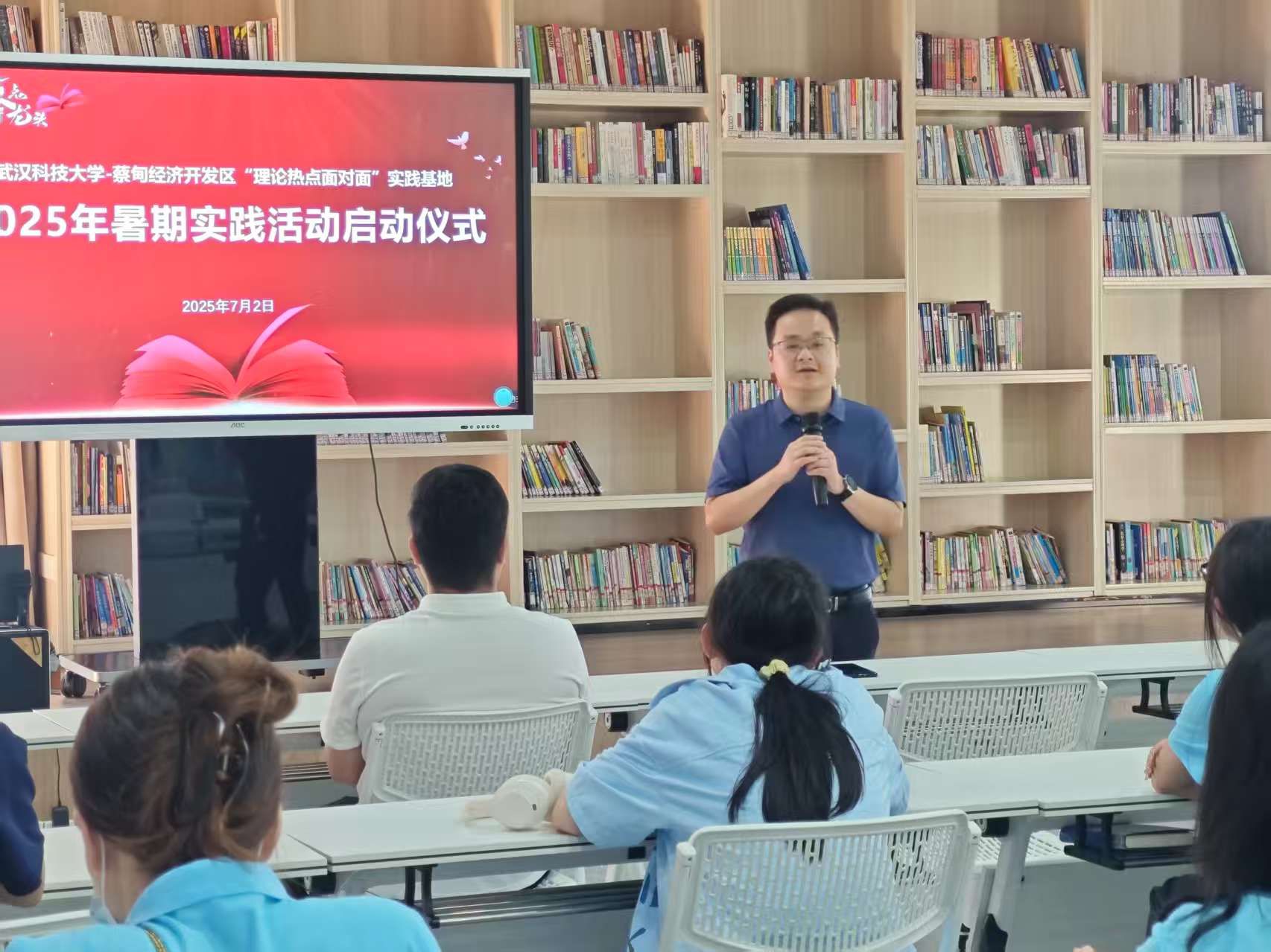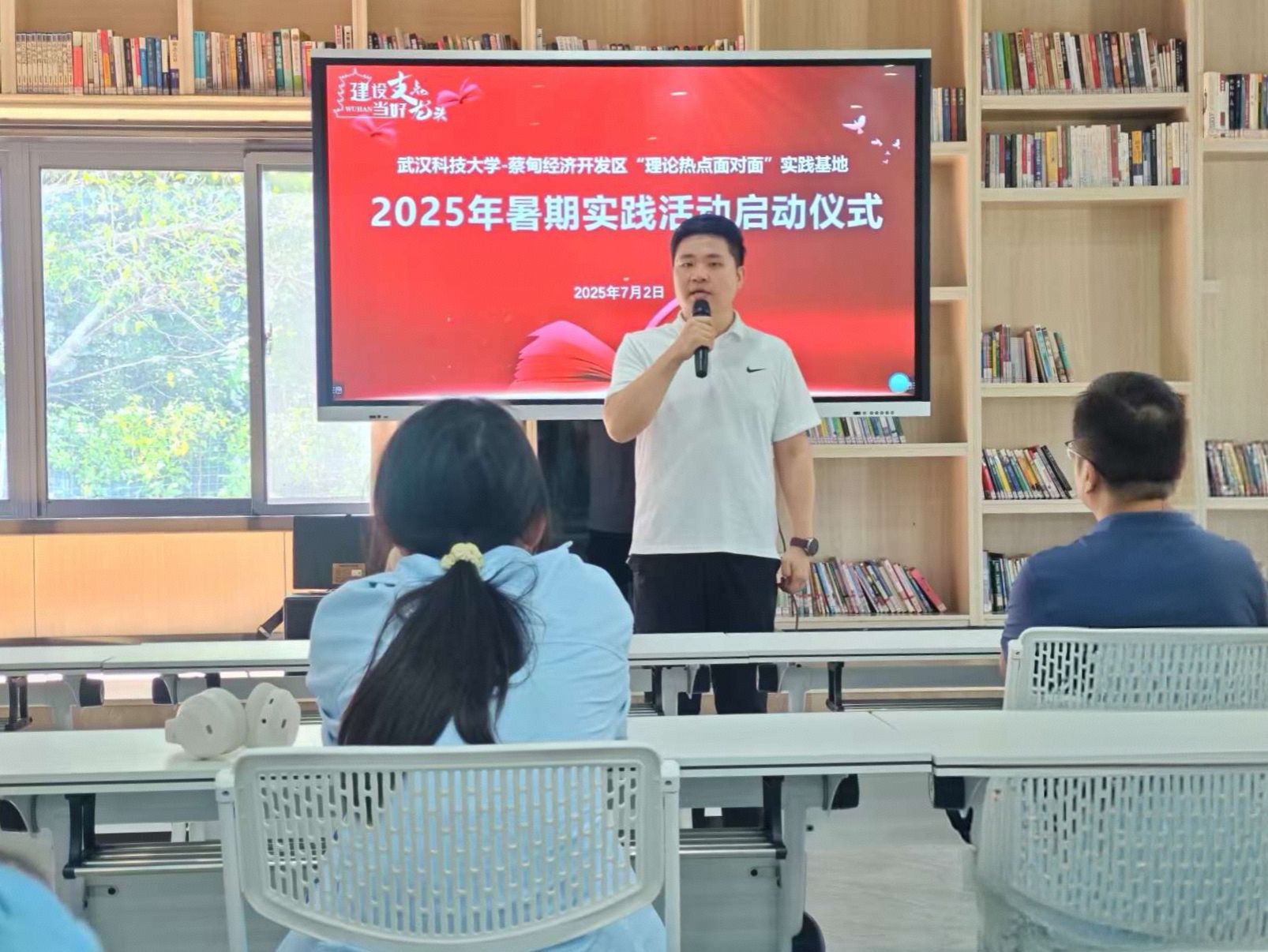 武科大网讯(通讯员赵张锦)7月2日上午,william威廉中文2025年暑期社会实践活动启动仪式在蔡甸区新时代文明实践中心举行。学院党委副书记郭海沙、蔡甸区奓山街道办事处副主任张栋出席启动仪式,学院指导教师张齐武教授、柳雨春副教授,团委书记李晓明老师,奓山街道党政办主任魏琪以及实践团队全体成员参加此次活动。