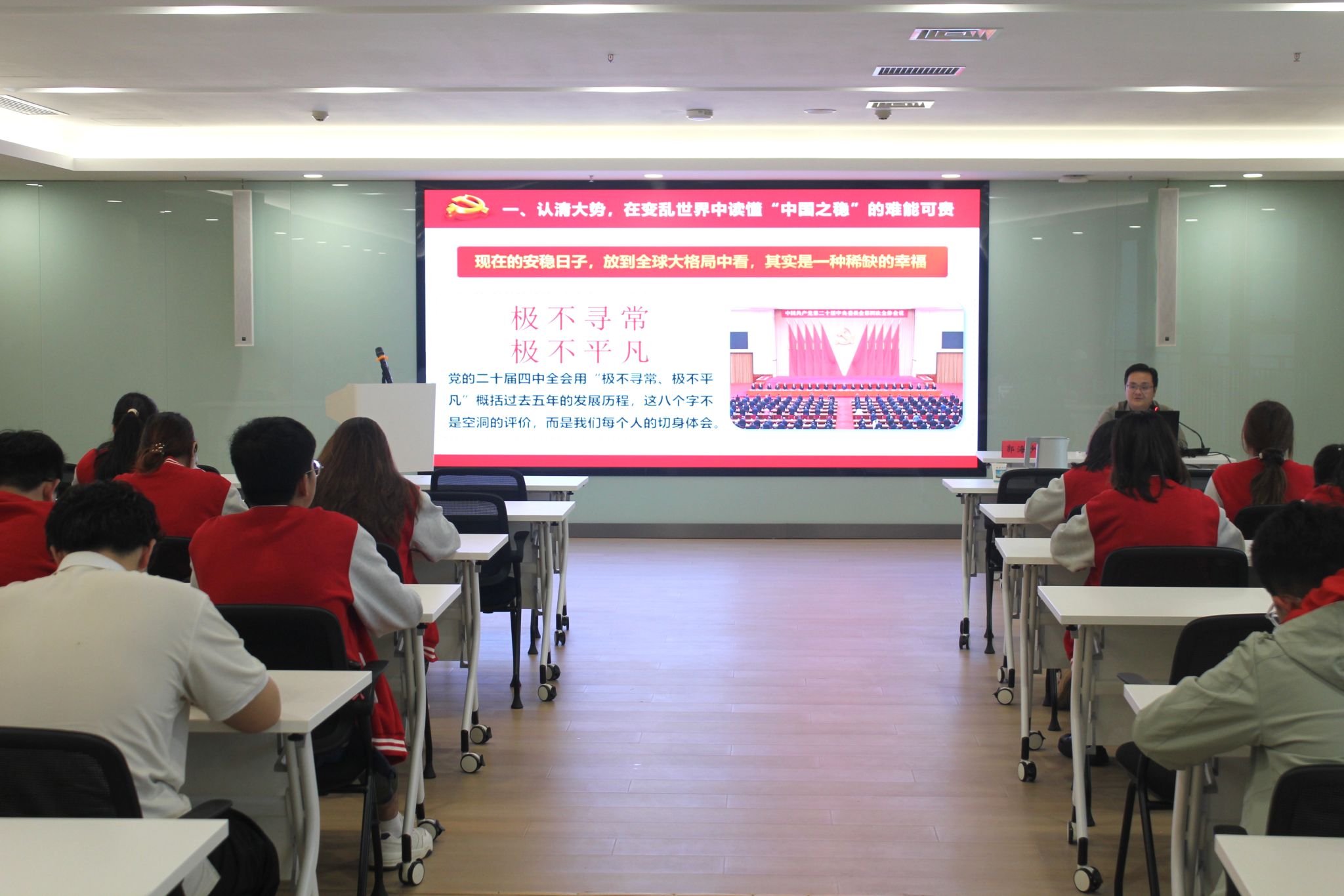 “中国之稳,稳在制度优势,稳在民心所向,稳在发展韧性。”学员王陈东在聆听报告后深受触动,他表示:“此次宣讲既有政治高度又有理论深度,让我对‘中国之治’的制度密码有了更深刻的体悟。作为青马学员,我将以此次学习为契机,坚持实事求是、求真务实,以实干精神践行‘强国有我’的青春誓言,在服务国家战略中贡献青春力量。”