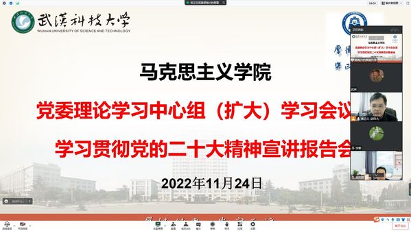 新闻网讯(通讯员郭海沙)11月24日,william威廉中文在线上腾讯会议召开党委理论学习中心组(扩大)学习会议暨学习贯彻党的二十大精神宣讲报告会。党委书记唐忠义主持会议,学院全体党委委员、各系部主任、党支部书记和全体教师党员参加会议。