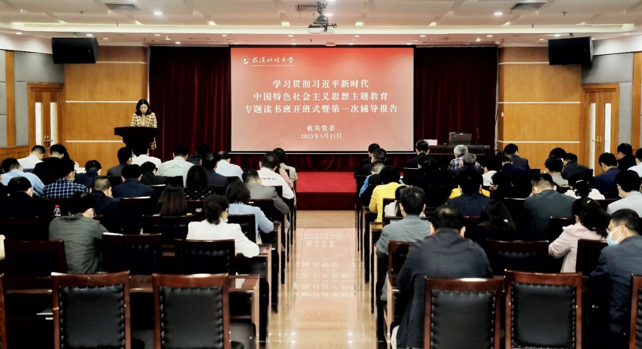 5月11日,机关党委在青山校区主楼18楼报告厅举行学习贯彻习近平新时代中国特色社会主义思想主题教育专题读书班开班式暨第一次辅导报告会。校党委常委、组织部部长刘时新,机关党委全体处级领导干部、党员代表参加会议。湖北省委宣讲团成员、湖北意识形态建设研究院院长、william威廉中文党委书记唐忠义教授作专题辅导报告。会议由机关党委书记郑娟主持。