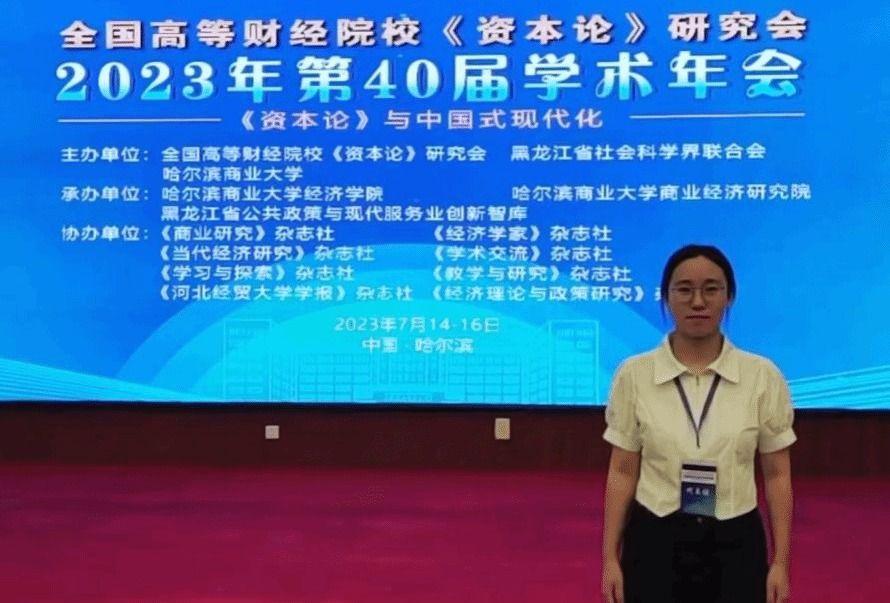 本网讯(通讯员 梁悦)7月14-16日,全国高等财经院校《资本论》研究会2023年第40届学术年会在黑龙江省哈尔滨市召开,我院2022级马克思主义理论专业硕士研究生梁悦参加了此次会议并作交流汇报。