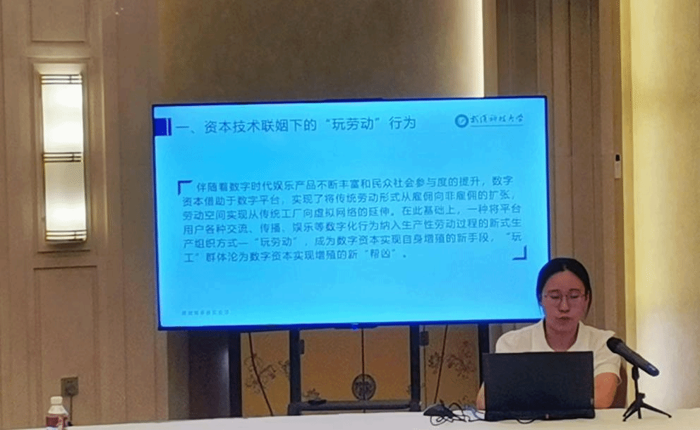 小组讨论环节中,梁悦作了题为“‘玩劳动’助纣数字资本为虐——资本有机构成理论视角的批判”交流汇报。她从资本技术联姻下的“玩劳动”行为、传统资本主义时期的资本有机构成、数字资本主义时期资本有机构成的理想与现实三方面展开阐释,受到参与讨论的专家学者们的高度评价,并对如何增强“玩劳动”概念的理论性提出进一步优化建议。会议结束后,梁悦还同其他参会专家、学者一起,先后赴黑龙江省北大荒集团博物馆、哈尔滨商业大学货币金融博物馆、商业票证馆、数字经济与商务智能实验室进行学习和考察。