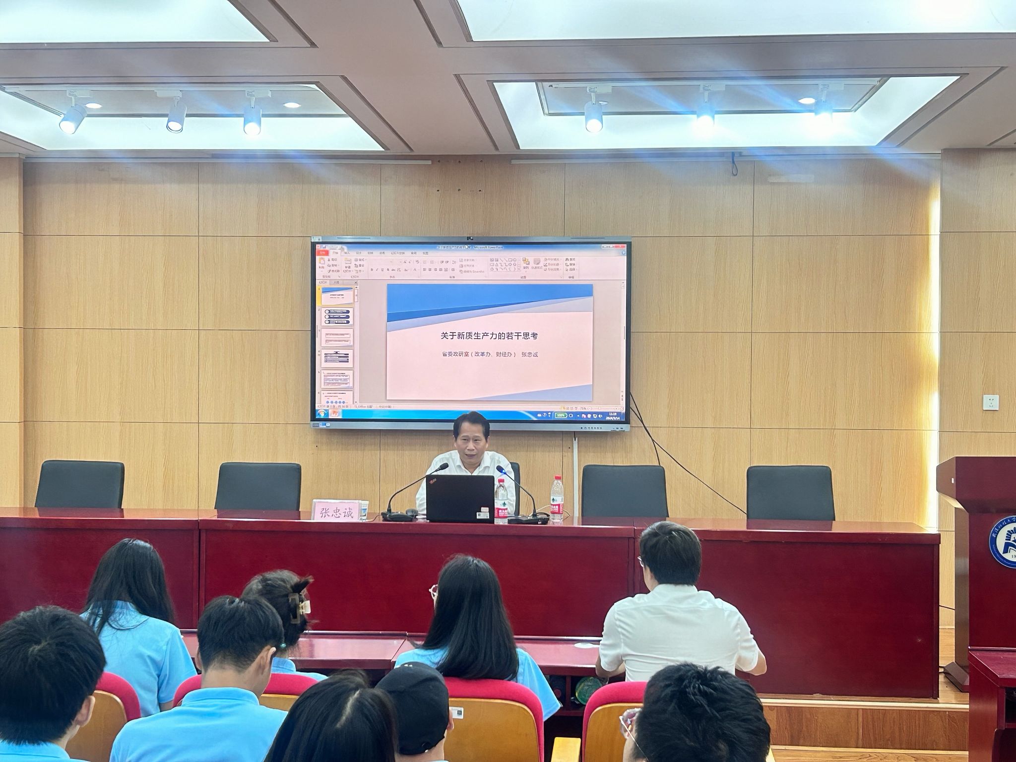武科大网讯(通讯员向海璐)9月14日上午,中共湖北省委政研室财经政策处张忠诚处长应邀为我院2024级研究生作题为《关于新质生产力的若干思考》的学术报告。学院院长刘文波主持报告会。