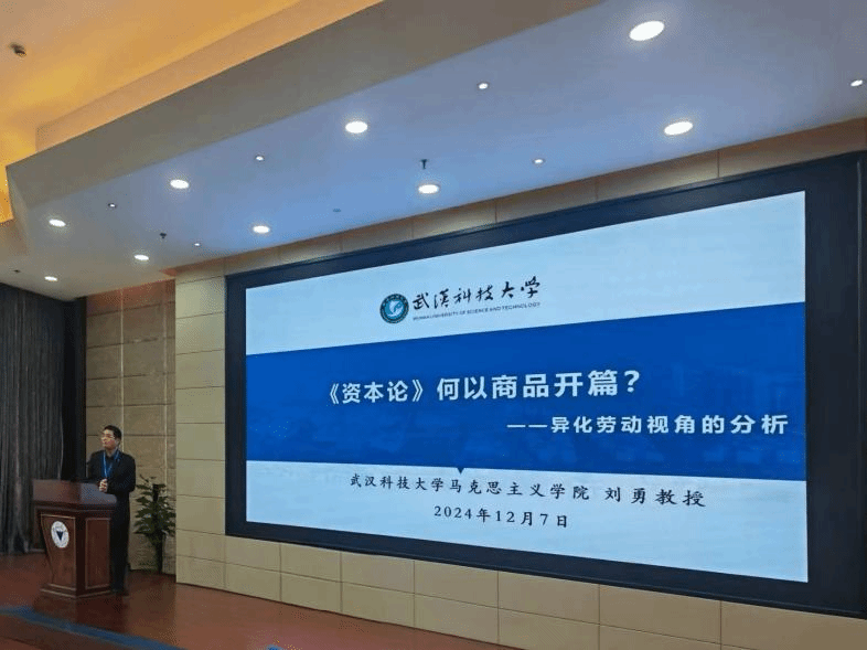 在12月7日开幕式之后的大会主题发言中,刘勇教授以“《资本论》何以商品开篇?——异化劳动视角的分析”为题,做了精彩分享。刘勇教授首先以《资本论》第一卷第一篇第一章《商品》的开端:资本主义生产方式占统治地位的社会的财富,表现为“庞大的商品堆积”,认为这不是马克思撰写《资本论》以“商品”开篇的充分理由,需要回到马克思早期的思想历程与宏大的思想整体中寻找答案。
